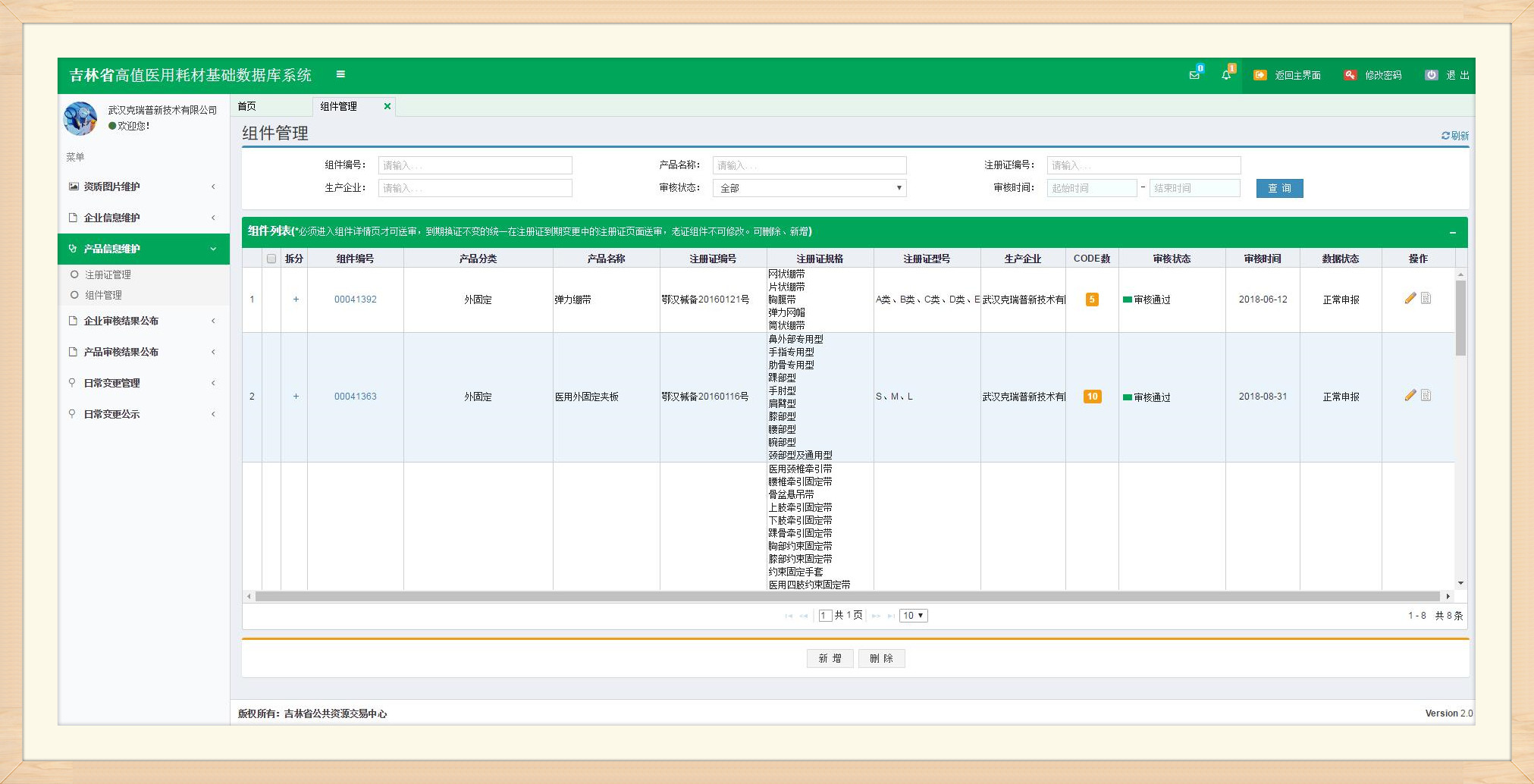 【吉林省高值醫(yī)用耗材基礎(chǔ)數(shù)據(jù)庫(kù)系統(tǒng)】武漢克瑞普新技術(shù)有限公司在吉林省高值醫(yī)用耗材申報(bào)系統(tǒng)中我們以成功審核通過我們的產(chǎn)品,本次通過的產(chǎn)品有東科圣康彈力繃帶、醫(yī)用外固定夾板、醫(yī)用外固定支具等產(chǎn)品,這類的產(chǎn)品適用于身體骨折后的外固定使用我們的產(chǎn)品已在各大醫(yī)院臨床使用。