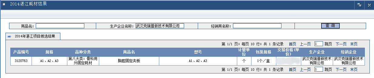 【2014年湛江醫(yī)用耗材集中采購候選結(jié)果展示】武漢克瑞普新技術(shù)有限公司生產(chǎn)的胸腔固定夾板(規(guī)格A1/A2/A3)胸骨骨科耗材在2014年度湛江集中采購項目中成功審核通過,我們的拿貨價格優(yōu)惠力度大對經(jīng)銷商拿貨要求門檻低,是眾多骨科耗材經(jīng)銷商可以視為拿貨標(biāo)準(zhǔn)的企業(yè)。