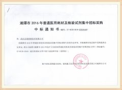 湖南省湘潭市2016年普通醫(yī)用耗材及檢驗劑集中招標(biāo)采購中標(biāo)通知書