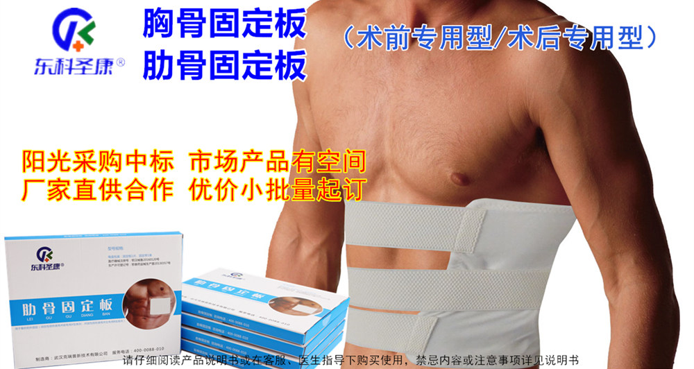 東科圣康品牌胸骨固定板、肋骨固定板系列產(chǎn)品,分術(shù)前、術(shù)后專(zhuān)用型兩大類(lèi),以及多個(gè)尺寸規(guī)格,該胸背部肋骨骨折損傷專(zhuān)用夾板產(chǎn)品由高分子納米材料、記憶鋁合金金屬板、多頭肋骨固定帶組成,具有結(jié)構(gòu)合理適用,重量輕,使用后具有一定舒服度,使用前無(wú)需加熱,操作簡(jiǎn)單方便等特點(diǎn)。產(chǎn)品已經(jīng)過(guò)輻照滅菌,可用于骨科、胸外科、急診科、120現(xiàn)場(chǎng)急救等科室的胸背部閉合性、開(kāi)放性肋骨骨折、及開(kāi)胸手術(shù)后的固定復(fù)位保護(hù),可進(jìn)手術(shù)室。該產(chǎn)品同時(shí)是全國(guó)多個(gè)地區(qū)政府主辦公立醫(yī)療機(jī)構(gòu)醫(yī)用耗材集中采購(gòu)、陽(yáng)光采購(gòu)項(xiàng)目中標(biāo)產(chǎn)品。